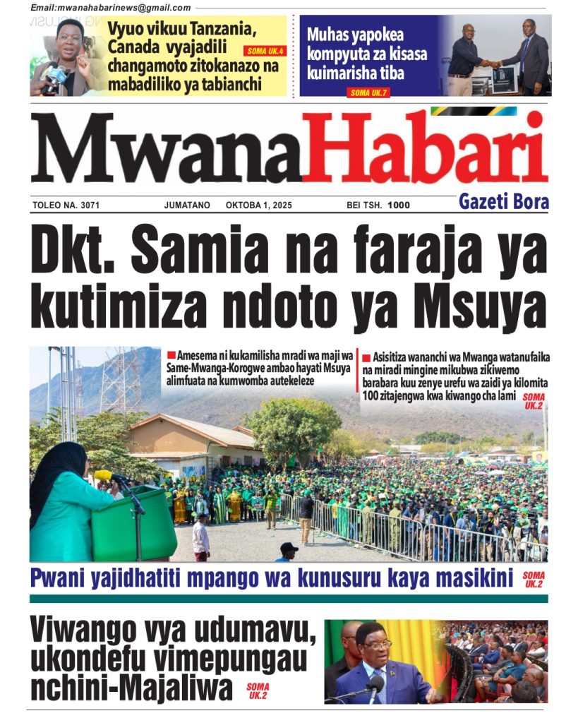 Karibu Arusha24tv leo Oct 1 Mwaka 2025 kutazama kilicho Andikwa katikaMagazeti ya Tanzania mbele na nyuma Hii ni A24tv.
