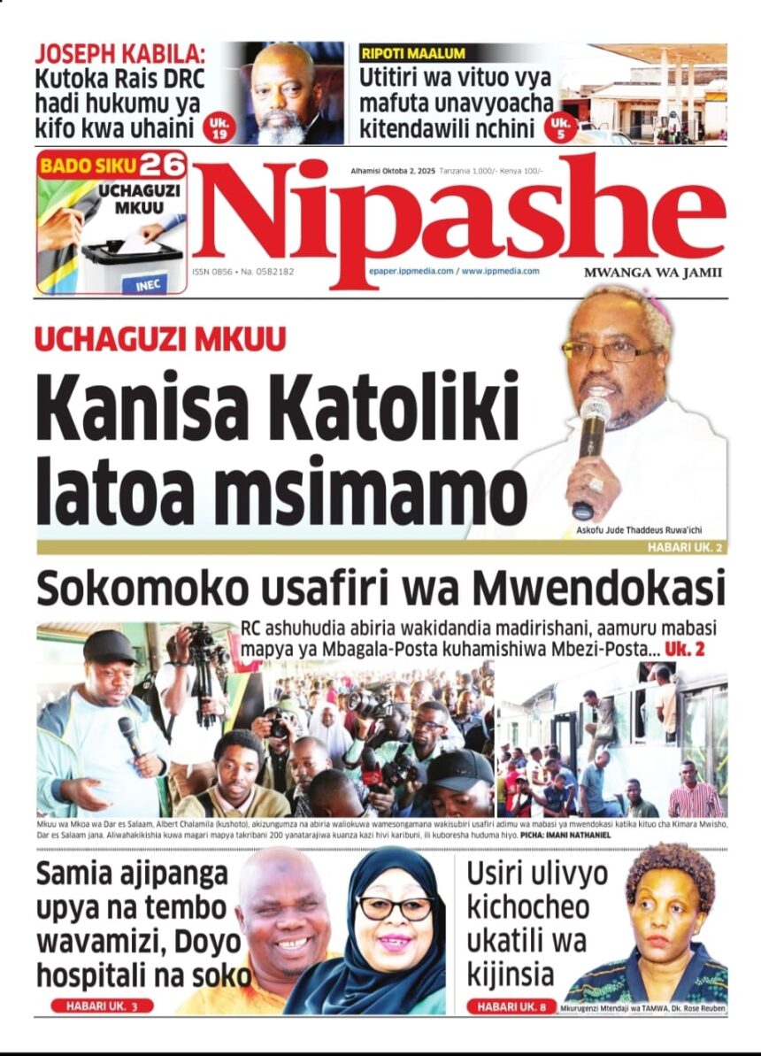 MagazetiMWENDO KASI BADO MWIBA KWA ABIRIA DAR ! MAGAZETI YA LEO OCT 2 MWAKA 2025 NA A24TV Last updated: October 2, 2025 3:35 am Geofrey Stephen Share 0 Min Read Karibu Arusha 24tv leo Oct 2 Mwaka 2025 kutazama habari kubwa Zilizo Andikwa katika Magazeti ya leo ya Tanzania mbele na nyuma Hii ni A24tv. Mwisho. VIGOGO 15 WAZITO KUTOA USHAIDI KESI YA LISSU ! MAGAZETI YA LEO SEPT 23 MWAKA 2025 NA A24TV. ASKOFU NI MARUFUKU WATAWA NA MAPADRI, KUJIUSISHA NA SIASA ! MAGAZETI YA LEO SEPT 26 MWAKA 2025 NA A24TV . WAKILI PETER KIBATALA AONGOZA FAMILIA YA POLEPOLE MAHAKAMANI, KUJUA ALIPO POLEPOLE ! MAGAZETI YA LEO OCT 9 MWAKA 2025 NA A24TV KIGOGO WA POLISI WATOANA JASHO NA LISSU MAHAKAMANI MAGAZETI YA LEO OCT 9 MWAKA 2025 NA A24TV. YANGA SIMBA WATAMBA KUFANYA VYEMA KIMATAIFA ! MAGAZETI YA LEO. OCT 11 MWAKA 2025 NA A24TVSign Up For Daily NewsletterBe keep up! Get the latest breaking news delivered straight to your inbox. Email address: Leave this field empty if you're human: By signing up, you agree to our Terms of Use and acknowledge the data practices in our Privacy Policy. You may unsubscribe at any time. Share This Article Facebook Whatsapp Whatsapp Telegram Copy Link Print Previous Article MGOMBEA URAIS WA CCM SAMIA SULUHU HASSAN KUINGIA ARUSHA LEO ! MAGAZETI YA LEO OCT 1 MWAKA 2025 Next Article Filmora 13 Crack only [Patch] [x32x64] Lifetime Bypass Leave a Comment Leave a Comment Leave a Reply Cancel replyYour email address will not be published. Required fields are marked * Recipe Rating Recipe Rating Comment *Name * Email * Website Save my name, email, and website in this browser for the next time I comment. Stay Connected235.3kFollowersLike69.1kFollowersFollow11.6kFollowersPin56.4kFollowersFollow136kSubscribersSubscribe4.4kFollowersFollow - Advertisement -Latest News Majaliwa: Serikali Yazindua Programu Maalum ya Uanagenzi Kwa Ajili ya Vijana Habari October 11, 2025 VETA Yaonesha Ubunifu wa Teknolojia ya Hybrid Katika Wiki ya Vijana Kitaifa Habari October 11, 2025 Majaliwa: Hakikisheni Mnaungana na NHIF Ili Kufurahia Huduma Bora za Afya Habari October 10, 2025 HOME MARKET, YAWAKARIBISHA WAKAZI WA ARUSHA KUJIPATIA MAHITAJI MUHIMU KUTOKA CHINA ,BEI NI SAWA NA BURE Entertainment October 10, 2025AdvertiseAdvertise with usNewslettersDeal