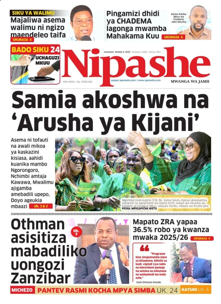 HABARI KUBWA KATIKA MAGAZETI YA LEO JUMA MOSI YA OCT 4 MWAKA 2025 NA A24TV .