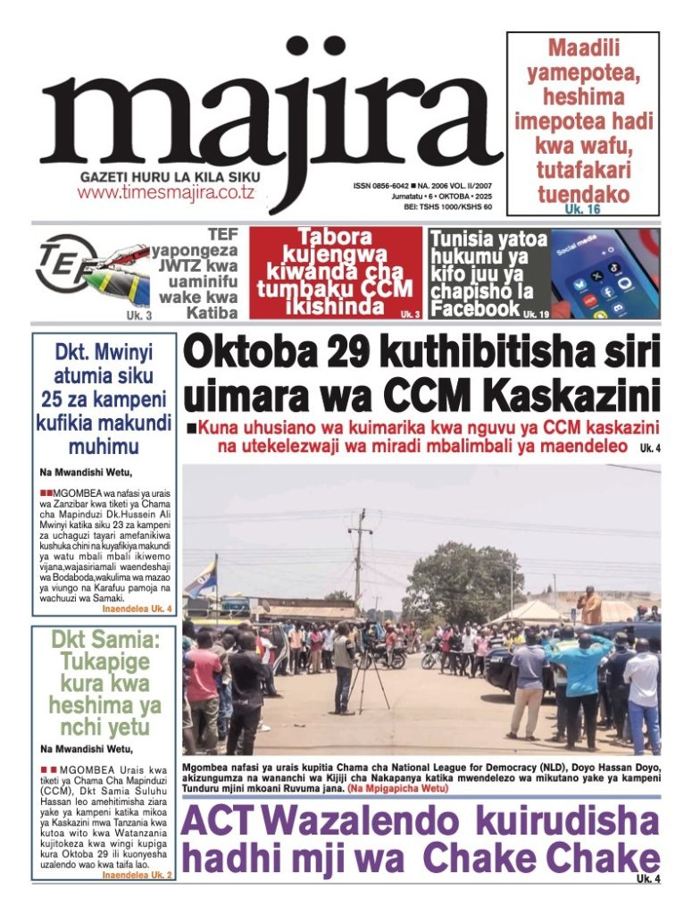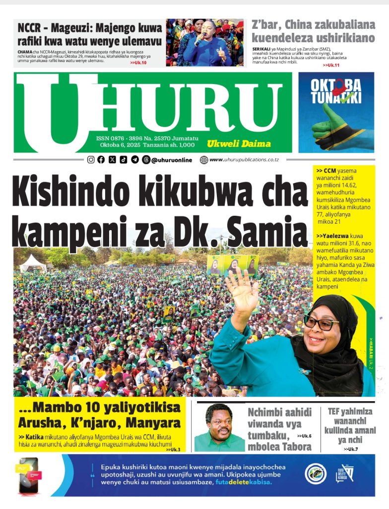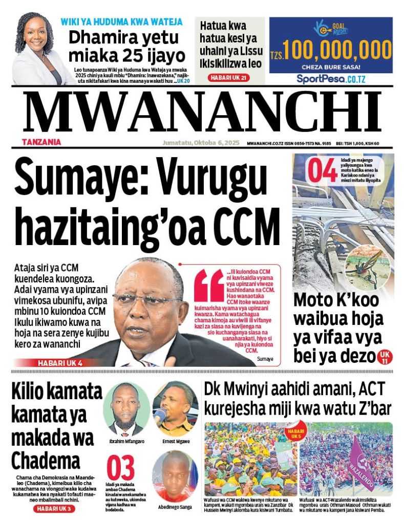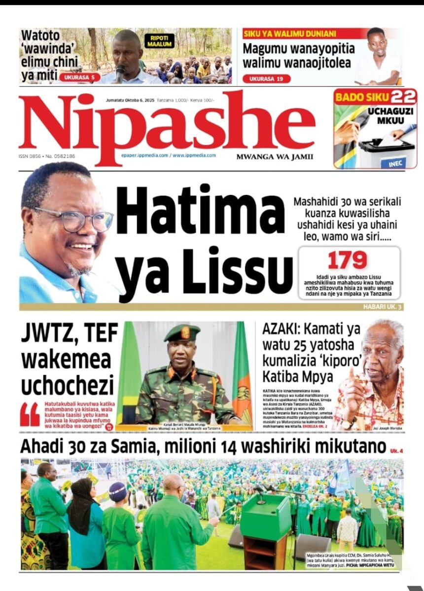 Juma tatu ya leo Oct 6 Mwaka 2025 karibu Arusha24tv kutazama kilicho andikwa katika magazeti ya Tanzania mbele na nyuma Hii ni A24tv .
