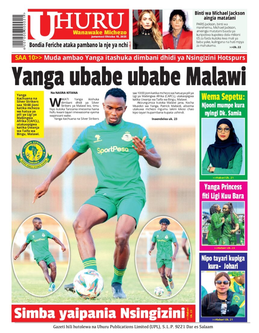Juma mosi ya leo Oct 18 karibu Arusha24tv kutazama kilicho Andikwa katika Magazeti ya leo ya Tanzania mbele na nyuma Hii ni A24tv. Mwisho.