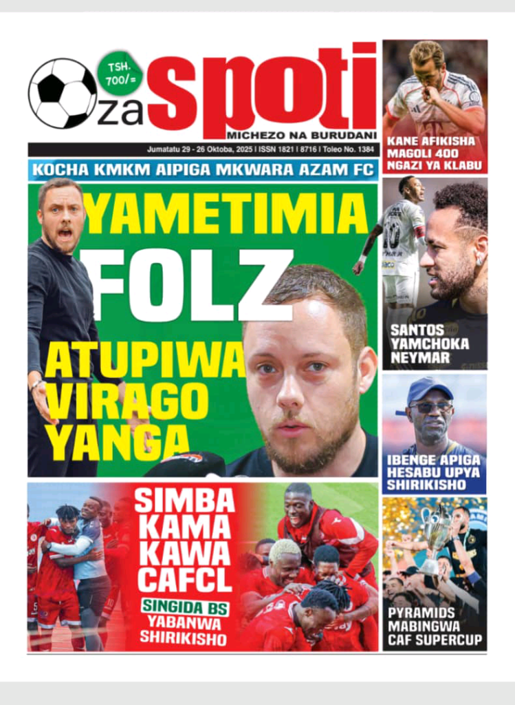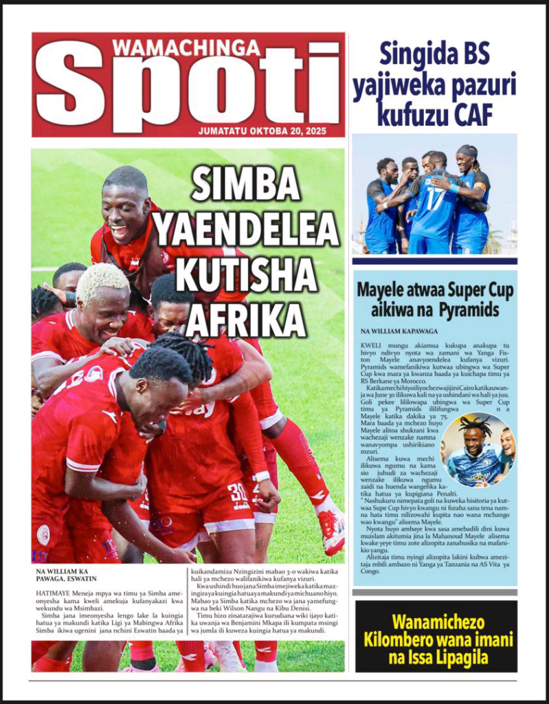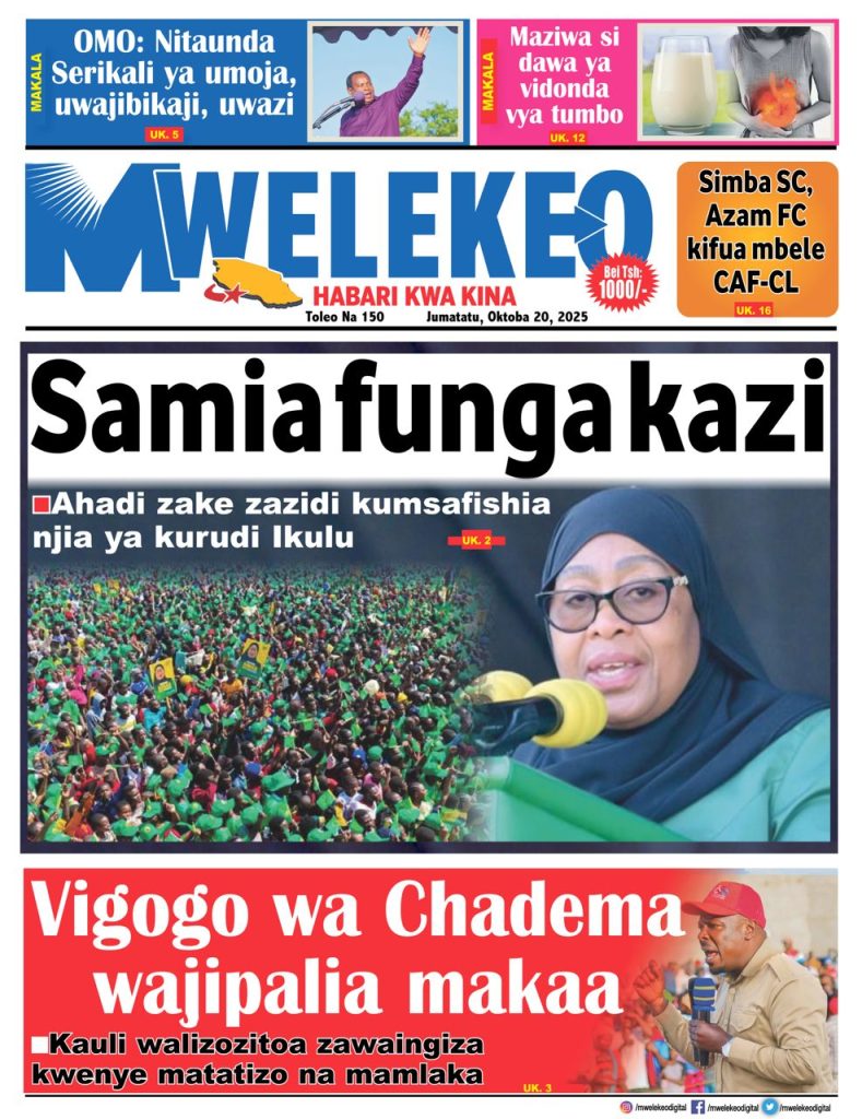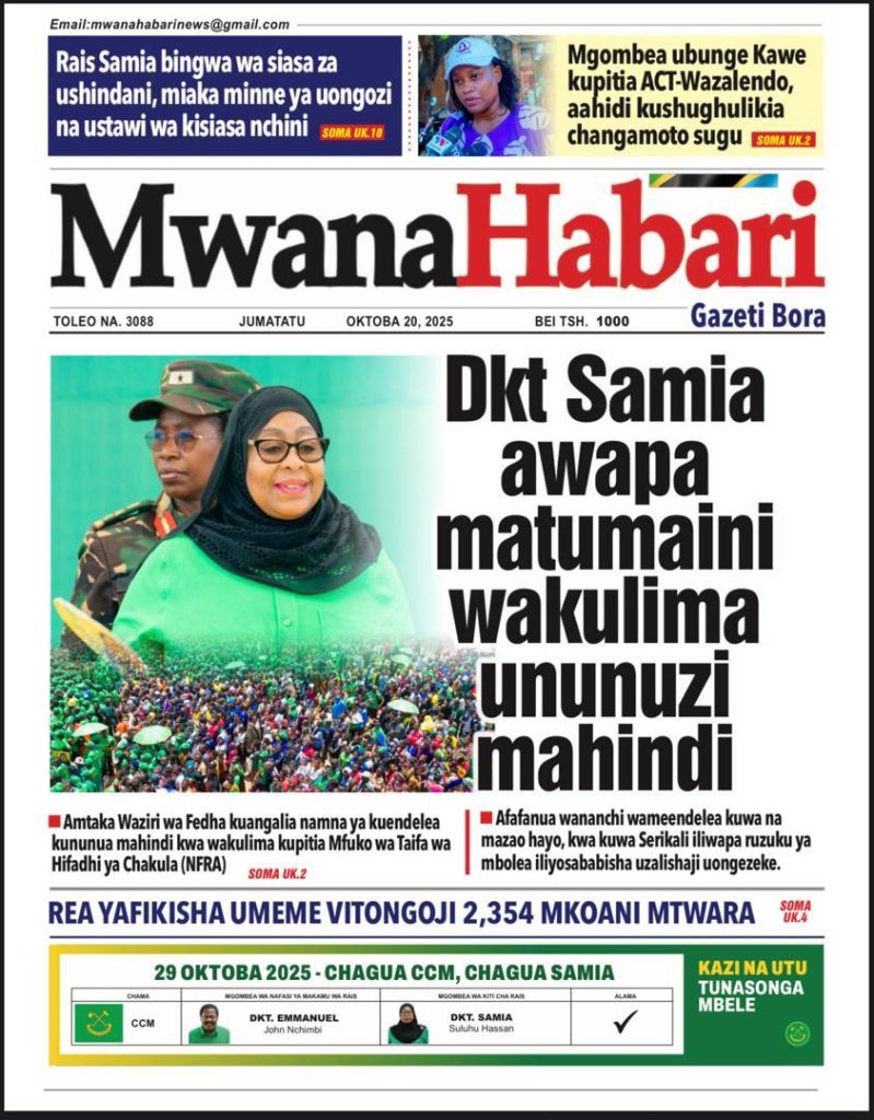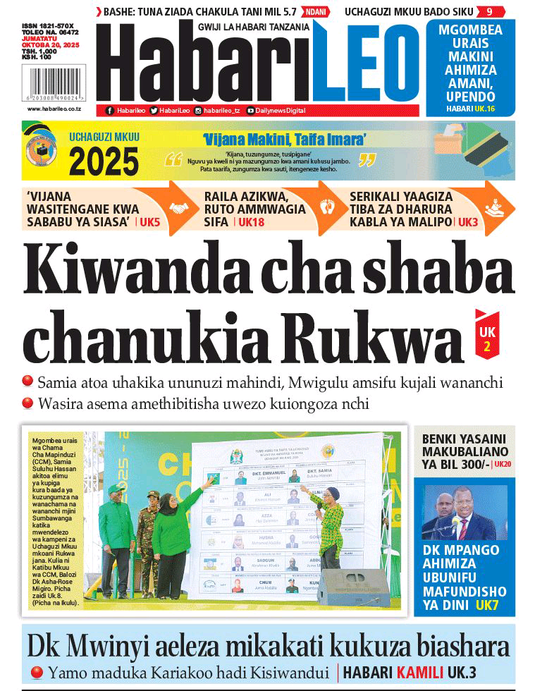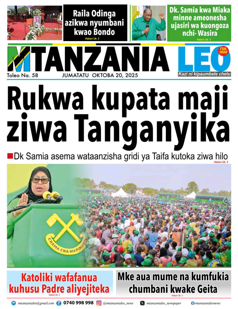 MagazetiPOLISI WALIKOROGA TENA NI KUHUSU KUPOTEA, NA KUPATIKANA KWA PADRI ! MAGAZETI YA LEO OCT 20 MWKA 2025 NA A24TV . Last updated: October 20, 2025 3:09 am Geofrey Stephen Share 0 Min Read Juma Tatu ya leo Oct 20 Mwaka 2025 Karibu kutazama kilicho Andikwa katika Magazeti ya Tanzania Mbele na Nyuma Hii ni A24tv . Mwisho. SIMBA KIBARUANI LEO KIMATAIFA , YANGA YAANZA KWA USHINDI WA TATU BILA ! MAGAZETI YA LEO SEPT 20 MWAKA 2025 NA A24TV . UVAMIZI NYUMBA YA MJANE MENGI YAIBUKA ! MAGAZETI YA LEO SEPT 25 MWAKA 2025 NA A24TV. HATIMA YA MPINA KUENDELEA KUGOMBEA URAIS? MAAMUZI YAKE SEPT 11 MWAKA 2025 , MAGAZETI YA LEO NA ARUSHA24TV VETA Yaongeza Mkazo Katika Mafunzo Yanayolingana na Mabadiliko ya Teknolojia ya Kisasa MAMA MZAZI WA POLEPOLE ALIA KWA UCHUNGU KUHUSU MWANAE ! MAGAZETI YA LEO OCT 8 MWAKA 2025 NA A24TV .Sign Up For Daily NewsletterBe keep up! Get the latest breaking news delivered straight to your inbox. Email address: Leave this field empty if you're human: By signing up, you agree to our Terms of Use and acknowledge the data practices in our Privacy Policy. You may unsubscribe at any time. Share This Article Facebook Whatsapp Whatsapp Telegram Copy Link Print Previous Article BAKWATA KILIMANJARO YAHIMIZA WANANCHI KUPIGA KURA OCT 29 MWAKA HUU 2025 Leave a Comment Leave a Comment Leave a Reply Cancel replyYour email address will not be published. Required fields are marked * Recipe Rating Recipe Rating Comment *Name * Email * Website Save my name, email, and website in this browser for the next time I comment. Stay Connected235.3kFollowersLike69.1kFollowersFollow11.6kFollowersPin56.4kFollowersFollow136kSubscribersSubscribe4.4kFollowersFollow - Advertisement -Latest News BAKWATA KILIMANJARO YAHIMIZA WANANCHI KUPIGA KURA OCT 29 MWAKA HUU 2025 Habari October 19, 2025 YANGA ,SIMBA,AZAM SINGIDA KIBARUANI KIMATAIFA WAHIDI USHINDI KWENDA MAKUNDI ! MAGAZETI YA LEO OCT 18 MWAKA 2025 NA A24TV . Magazeti October 18, 2025 HOME MARKET SUPERMARKET DISCOUNT INAENDELEA KWA ASILIMIA 20% KARIBU UENDELEE KUJIPATIA BIDHAA ZA NYUMBANI NA OFISINI WAI SASA NJOO NA RAFIKI YAKO Marketing October 17, 2025 KENYA NI SIMANZI NA MAJONZI NGULI WA SIASA RAILA AKIAGWA ! MAGAZETI YA LEO OCT 17 MWAKA 2025 NA ARUSHA24TV . Magazeti October 17, 2025AdvertiseAdvertise with usNewslettersDeal