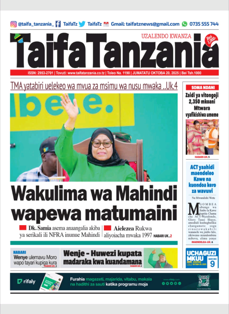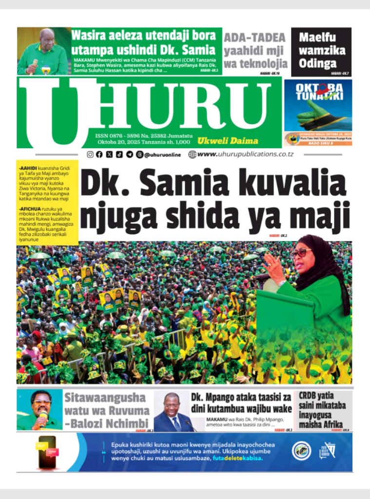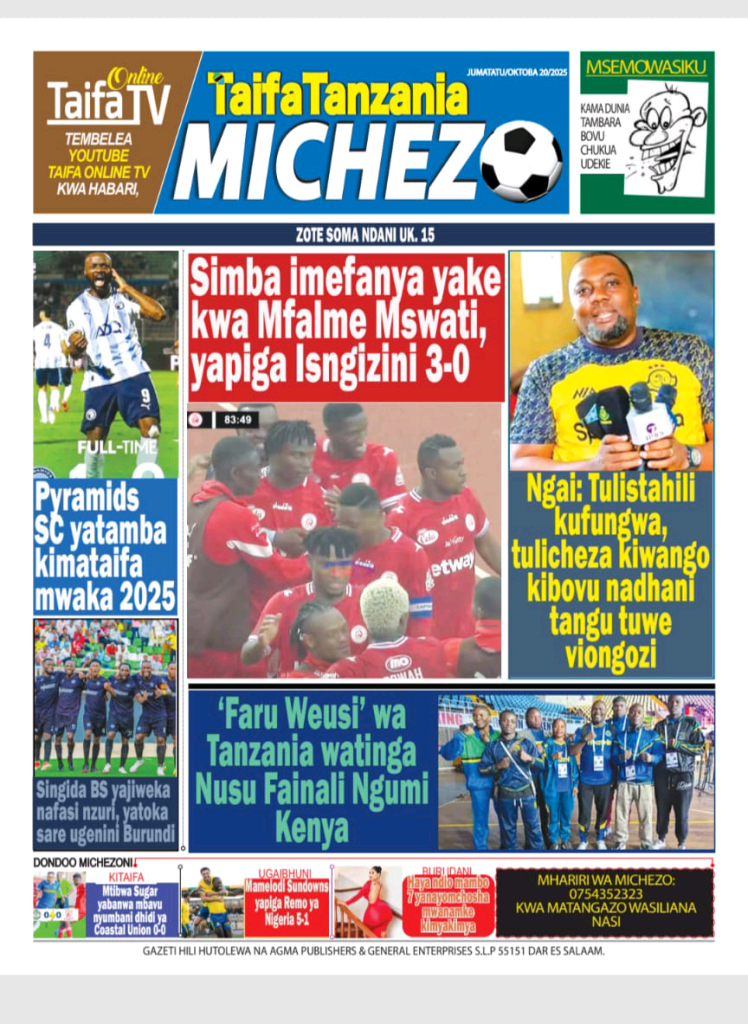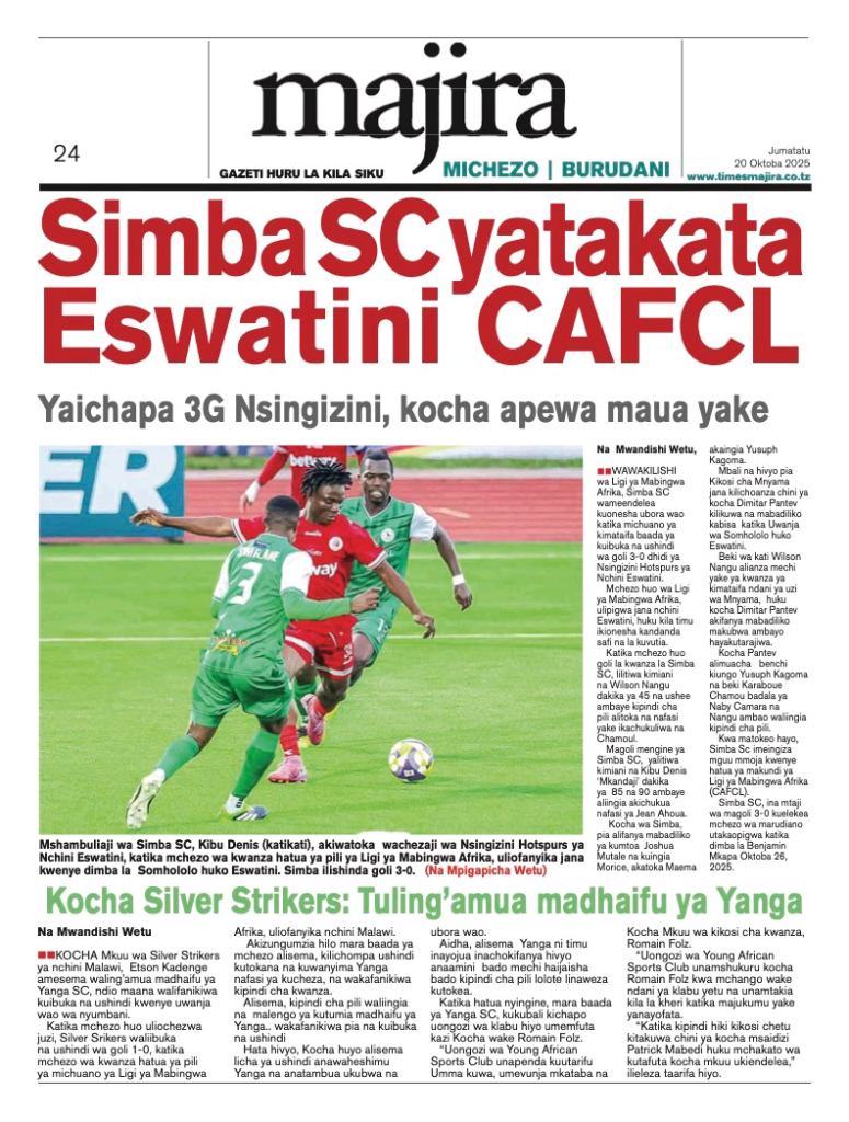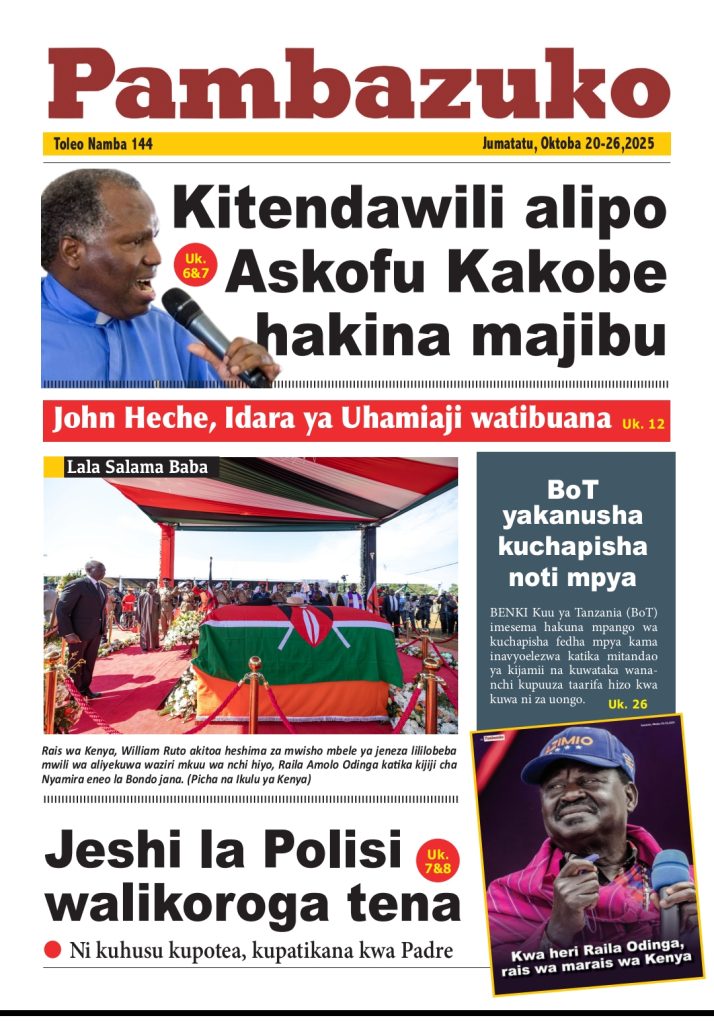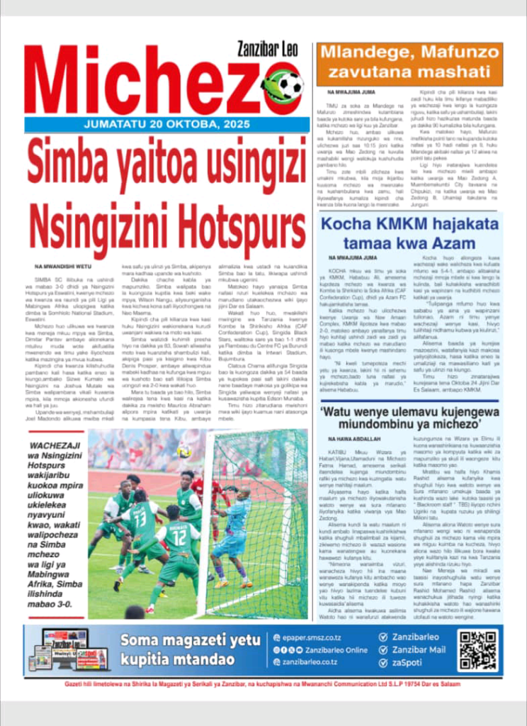 MagazetiPOLISI WALIKOROGA TENA NI KUHUSU KUPOTEA, NA KUPATIKANA KWA PADRI ! MAGAZETI YA LEO OCT 20 MWKA 2025 NA A24TV . Last updated: October 20, 2025 3:09 am Geofrey Stephen Share 0 Min Read Juma Tatu ya leo Oct 20 Mwaka 2025 Karibu kutazama kilicho Andikwa katika Magazeti ya Tanzania Mbele na Nyuma Hii ni A24tv . Mwisho. SIMBA KIBARUANI LEO KIMATAIFA , YANGA YAANZA KWA USHINDI WA TATU BILA ! MAGAZETI YA LEO SEPT 20 MWAKA 2025 NA A24TV . UVAMIZI NYUMBA YA MJANE MENGI YAIBUKA ! MAGAZETI YA LEO SEPT 25 MWAKA 2025 NA A24TV. HATIMA YA MPINA KUENDELEA KUGOMBEA URAIS? MAAMUZI YAKE SEPT 11 MWAKA 2025 , MAGAZETI YA LEO NA ARUSHA24TV VETA Yaongeza Mkazo Katika Mafunzo Yanayolingana na Mabadiliko ya Teknolojia ya Kisasa MAMA MZAZI WA POLEPOLE ALIA KWA UCHUNGU KUHUSU MWANAE ! MAGAZETI YA LEO OCT 8 MWAKA 2025 NA A24TV .Sign Up For Daily NewsletterBe keep up! Get the latest breaking news delivered straight to your inbox. Email address: Leave this field empty if you're human: By signing up, you agree to our Terms of Use and acknowledge the data practices in our Privacy Policy. You may unsubscribe at any time. Share This Article Facebook Whatsapp Whatsapp Telegram Copy Link Print Previous Article BAKWATA KILIMANJARO YAHIMIZA WANANCHI KUPIGA KURA OCT 29 MWAKA HUU 2025 Leave a Comment Leave a Comment Leave a Reply Cancel replyYour email address will not be published. Required fields are marked * Recipe Rating Recipe Rating Comment *Name * Email * Website Save my name, email, and website in this browser for the next time I comment. Stay Connected235.3kFollowersLike69.1kFollowersFollow11.6kFollowersPin56.4kFollowersFollow136kSubscribersSubscribe4.4kFollowersFollow - Advertisement -Latest News BAKWATA KILIMANJARO YAHIMIZA WANANCHI KUPIGA KURA OCT 29 MWAKA HUU 2025 Habari October 19, 2025 YANGA ,SIMBA,AZAM SINGIDA KIBARUANI KIMATAIFA WAHIDI USHINDI KWENDA MAKUNDI ! MAGAZETI YA LEO OCT 18 MWAKA 2025 NA A24TV . Magazeti October 18, 2025 HOME MARKET SUPERMARKET DISCOUNT INAENDELEA KWA ASILIMIA 20% KARIBU UENDELEE KUJIPATIA BIDHAA ZA NYUMBANI NA OFISINI WAI SASA NJOO NA RAFIKI YAKO Marketing October 17, 2025 KENYA NI SIMANZI NA MAJONZI NGULI WA SIASA RAILA AKIAGWA ! MAGAZETI YA LEO OCT 17 MWAKA 2025 NA ARUSHA24TV . Magazeti October 17, 2025AdvertiseAdvertise with usNewslettersDeal