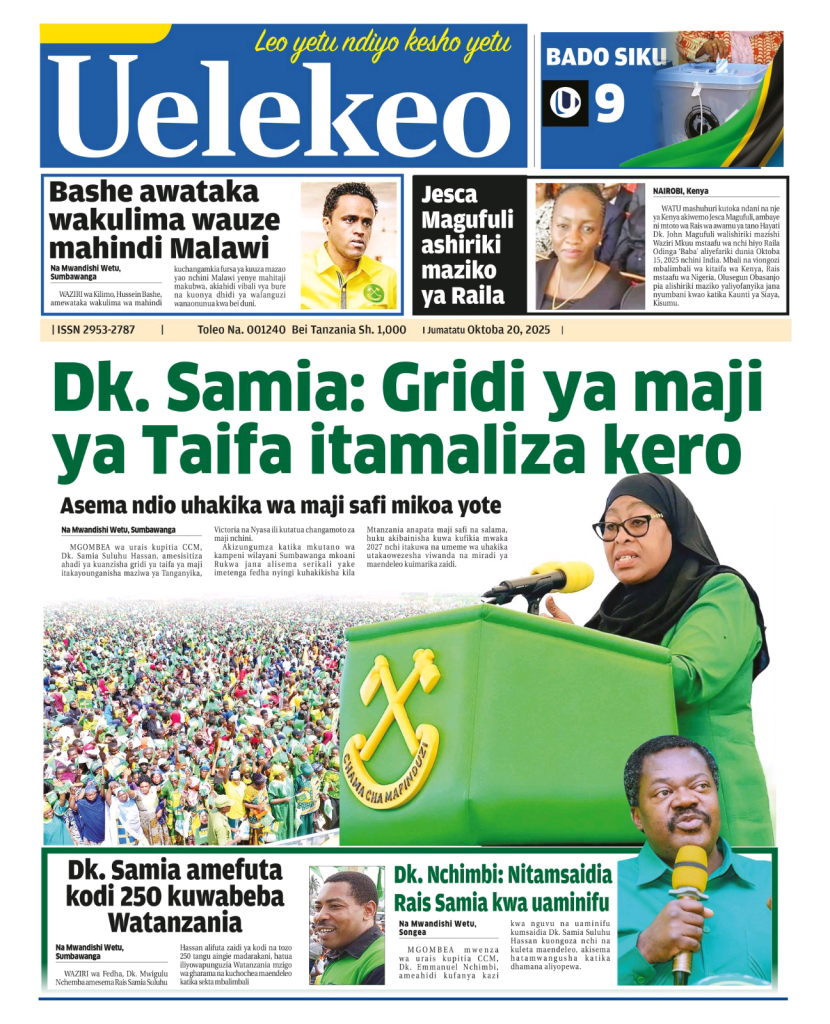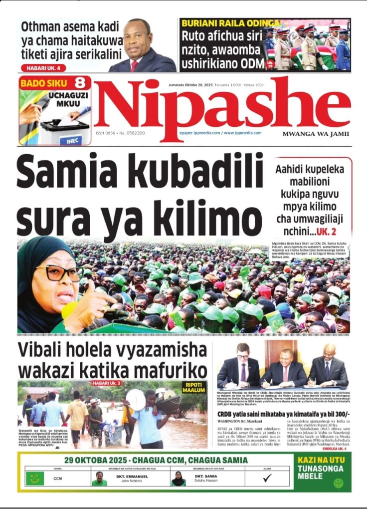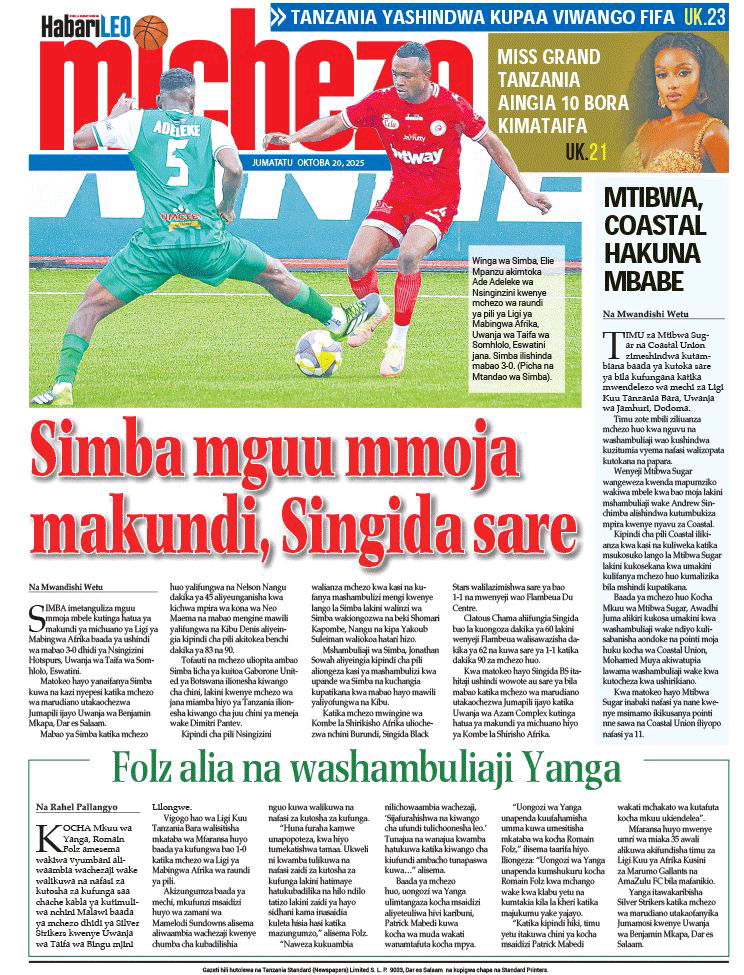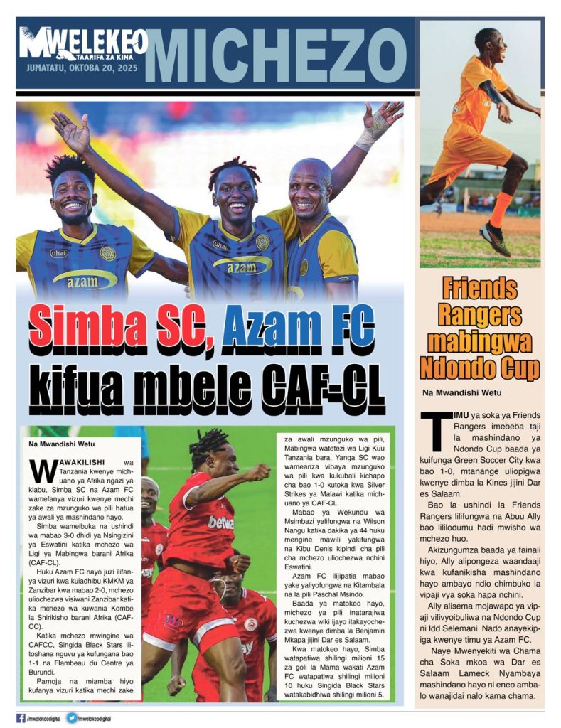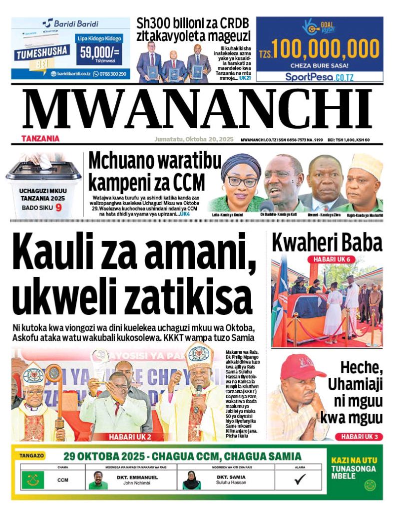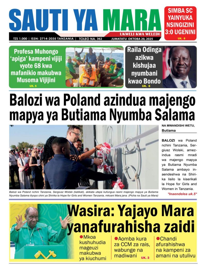 MagazetiPOLISI WALIKOROGA TENA NI KUHUSU KUPOTEA, NA KUPATIKANA KWA PADRI ! MAGAZETI YA LEO OCT 20 MWKA 2025 NA A24TV . Last updated: October 20, 2025 3:09 am Geofrey Stephen Share 0 Min Read Juma Tatu ya leo Oct 20 Mwaka 2025 Karibu kutazama kilicho Andikwa katika Magazeti ya Tanzania Mbele na Nyuma Hii ni A24tv . Mwisho. SIMBA KIBARUANI LEO KIMATAIFA , YANGA YAANZA KWA USHINDI WA TATU BILA ! MAGAZETI YA LEO SEPT 20 MWAKA 2025 NA A24TV . UVAMIZI NYUMBA YA MJANE MENGI YAIBUKA ! MAGAZETI YA LEO SEPT 25 MWAKA 2025 NA A24TV. HATIMA YA MPINA KUENDELEA KUGOMBEA URAIS? MAAMUZI YAKE SEPT 11 MWAKA 2025 , MAGAZETI YA LEO NA ARUSHA24TV VETA Yaongeza Mkazo Katika Mafunzo Yanayolingana na Mabadiliko ya Teknolojia ya Kisasa MAMA MZAZI WA POLEPOLE ALIA KWA UCHUNGU KUHUSU MWANAE ! MAGAZETI YA LEO OCT 8 MWAKA 2025 NA A24TV .Sign Up For Daily NewsletterBe keep up! Get the latest breaking news delivered straight to your inbox. Email address: Leave this field empty if you're human: By signing up, you agree to our Terms of Use and acknowledge the data practices in our Privacy Policy. You may unsubscribe at any time. Share This Article Facebook Whatsapp Whatsapp Telegram Copy Link Print Previous Article BAKWATA KILIMANJARO YAHIMIZA WANANCHI KUPIGA KURA OCT 29 MWAKA HUU 2025 Leave a Comment Leave a Comment Leave a Reply Cancel replyYour email address will not be published. Required fields are marked * Recipe Rating Recipe Rating Comment *Name * Email * Website Save my name, email, and website in this browser for the next time I comment. Stay Connected235.3kFollowersLike69.1kFollowersFollow11.6kFollowersPin56.4kFollowersFollow136kSubscribersSubscribe4.4kFollowersFollow - Advertisement -Latest News BAKWATA KILIMANJARO YAHIMIZA WANANCHI KUPIGA KURA OCT 29 MWAKA HUU 2025 Habari October 19, 2025 YANGA ,SIMBA,AZAM SINGIDA KIBARUANI KIMATAIFA WAHIDI USHINDI KWENDA MAKUNDI ! MAGAZETI YA LEO OCT 18 MWAKA 2025 NA A24TV . Magazeti October 18, 2025 HOME MARKET SUPERMARKET DISCOUNT INAENDELEA KWA ASILIMIA 20% KARIBU UENDELEE KUJIPATIA BIDHAA ZA NYUMBANI NA OFISINI WAI SASA NJOO NA RAFIKI YAKO Marketing October 17, 2025 KENYA NI SIMANZI NA MAJONZI NGULI WA SIASA RAILA AKIAGWA ! MAGAZETI YA LEO OCT 17 MWAKA 2025 NA ARUSHA24TV . Magazeti October 17, 2025AdvertiseAdvertise with usNewslettersDeal