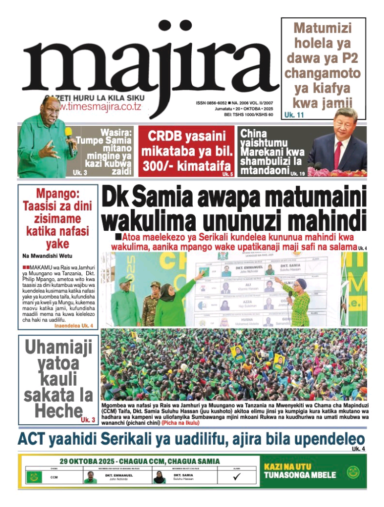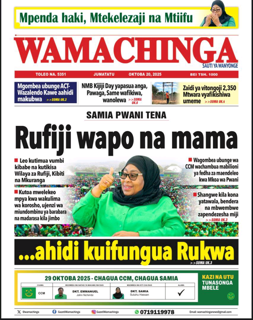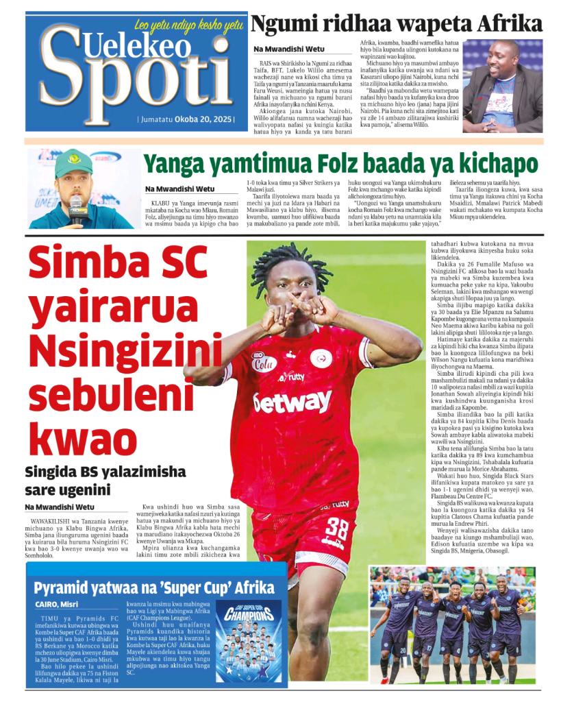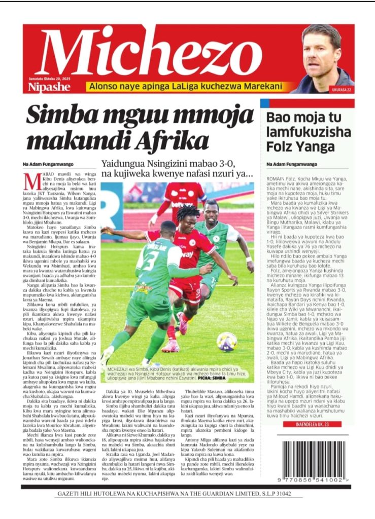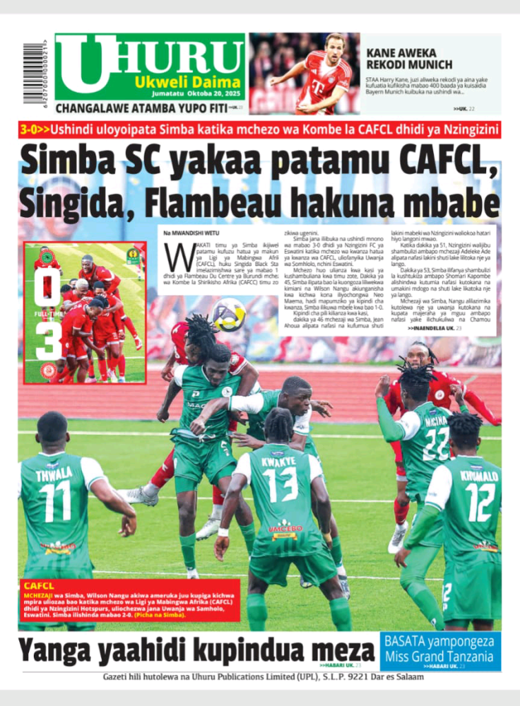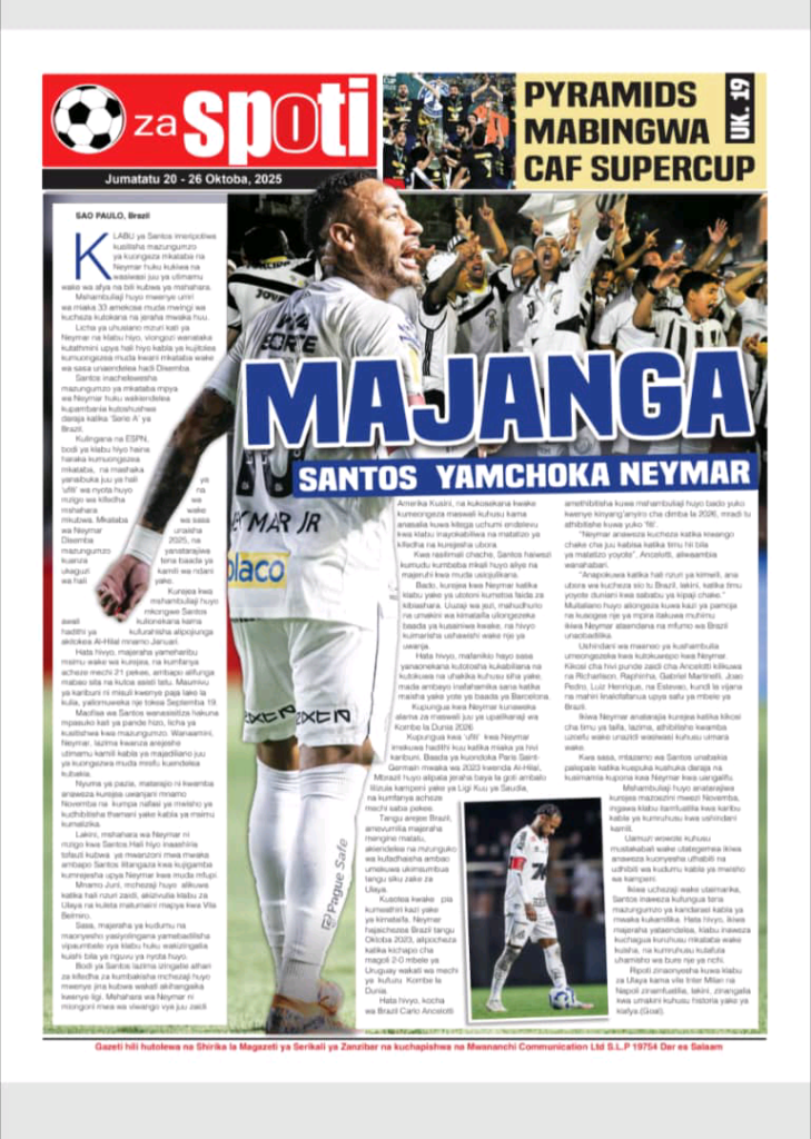 MagazetiPOLISI WALIKOROGA TENA NI KUHUSU KUPOTEA, NA KUPATIKANA KWA PADRI ! MAGAZETI YA LEO OCT 20 MWKA 2025 NA A24TV . Last updated: October 20, 2025 3:09 am Geofrey Stephen Share 0 Min Read Juma Tatu ya leo Oct 20 Mwaka 2025 Karibu kutazama kilicho Andikwa katika Magazeti ya Tanzania Mbele na Nyuma Hii ni A24tv . Mwisho. SIMBA KIBARUANI LEO KIMATAIFA , YANGA YAANZA KWA USHINDI WA TATU BILA ! MAGAZETI YA LEO SEPT 20 MWAKA 2025 NA A24TV . UVAMIZI NYUMBA YA MJANE MENGI YAIBUKA ! MAGAZETI YA LEO SEPT 25 MWAKA 2025 NA A24TV. HATIMA YA MPINA KUENDELEA KUGOMBEA URAIS? MAAMUZI YAKE SEPT 11 MWAKA 2025 , MAGAZETI YA LEO NA ARUSHA24TV VETA Yaongeza Mkazo Katika Mafunzo Yanayolingana na Mabadiliko ya Teknolojia ya Kisasa MAMA MZAZI WA POLEPOLE ALIA KWA UCHUNGU KUHUSU MWANAE ! MAGAZETI YA LEO OCT 8 MWAKA 2025 NA A24TV .Sign Up For Daily NewsletterBe keep up! Get the latest breaking news delivered straight to your inbox. Email address: Leave this field empty if you're human: By signing up, you agree to our Terms of Use and acknowledge the data practices in our Privacy Policy. You may unsubscribe at any time. Share This Article Facebook Whatsapp Whatsapp Telegram Copy Link Print Previous Article BAKWATA KILIMANJARO YAHIMIZA WANANCHI KUPIGA KURA OCT 29 MWAKA HUU 2025 Leave a Comment Leave a Comment Leave a Reply Cancel replyYour email address will not be published. Required fields are marked * Recipe Rating Recipe Rating Comment *Name * Email * Website Save my name, email, and website in this browser for the next time I comment. Stay Connected235.3kFollowersLike69.1kFollowersFollow11.6kFollowersPin56.4kFollowersFollow136kSubscribersSubscribe4.4kFollowersFollow - Advertisement -Latest News BAKWATA KILIMANJARO YAHIMIZA WANANCHI KUPIGA KURA OCT 29 MWAKA HUU 2025 Habari October 19, 2025 YANGA ,SIMBA,AZAM SINGIDA KIBARUANI KIMATAIFA WAHIDI USHINDI KWENDA MAKUNDI ! MAGAZETI YA LEO OCT 18 MWAKA 2025 NA A24TV . Magazeti October 18, 2025 HOME MARKET SUPERMARKET DISCOUNT INAENDELEA KWA ASILIMIA 20% KARIBU UENDELEE KUJIPATIA BIDHAA ZA NYUMBANI NA OFISINI WAI SASA NJOO NA RAFIKI YAKO Marketing October 17, 2025 KENYA NI SIMANZI NA MAJONZI NGULI WA SIASA RAILA AKIAGWA ! MAGAZETI YA LEO OCT 17 MWAKA 2025 NA ARUSHA24TV . Magazeti October 17, 2025AdvertiseAdvertise with usNewslettersDeal