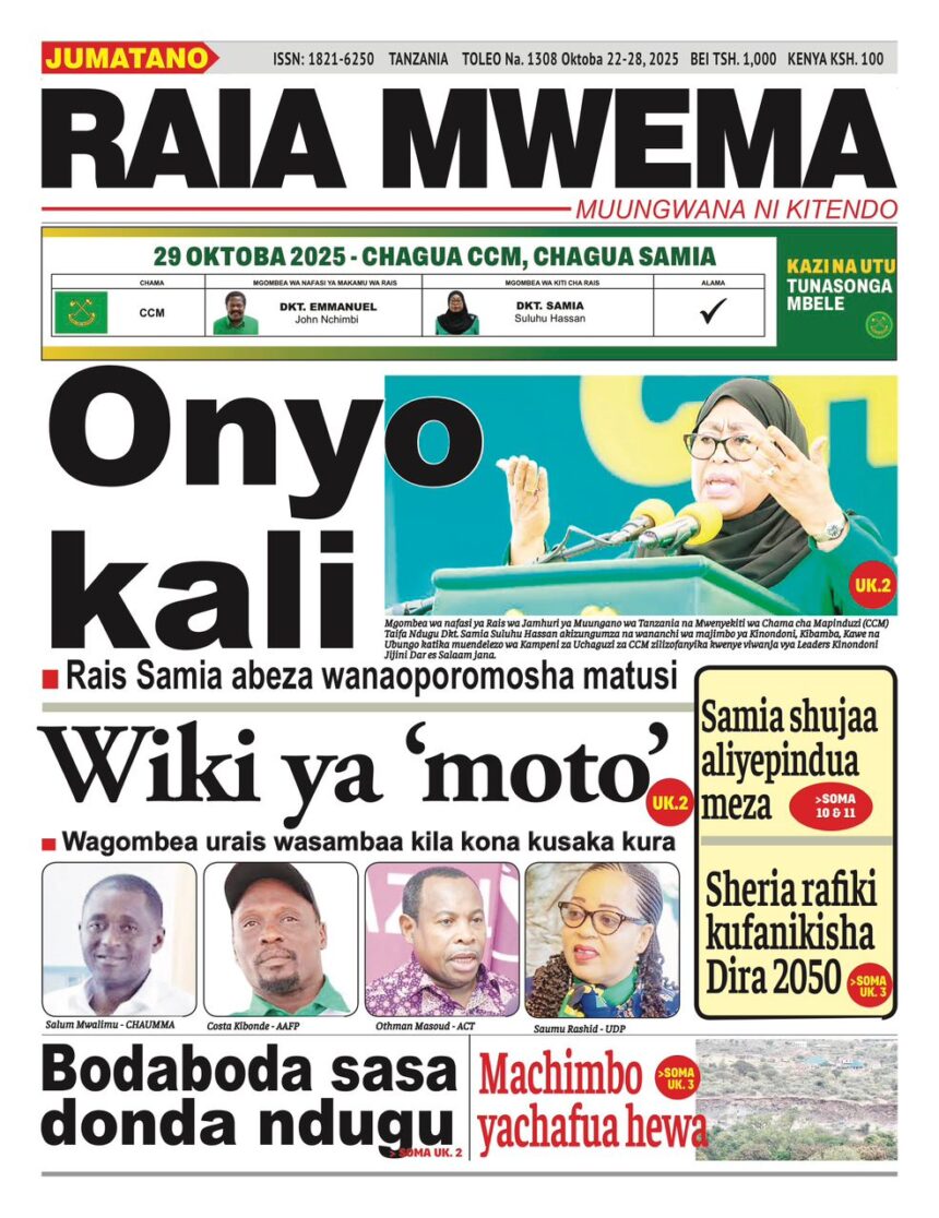 Juma Tano ya leo Oct 22 Mwaka 2025 Karibu Kutazama Kilicho Andikwa Katika Magazeti ya Tanzania mbele na nguma Hii ni A24tv .