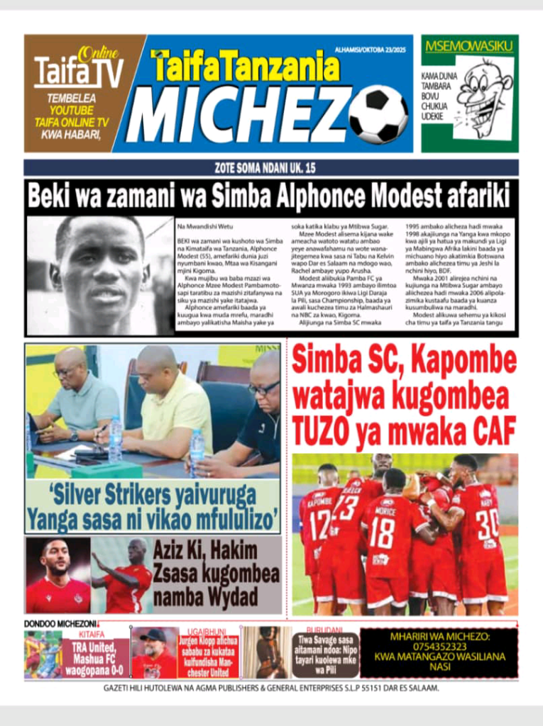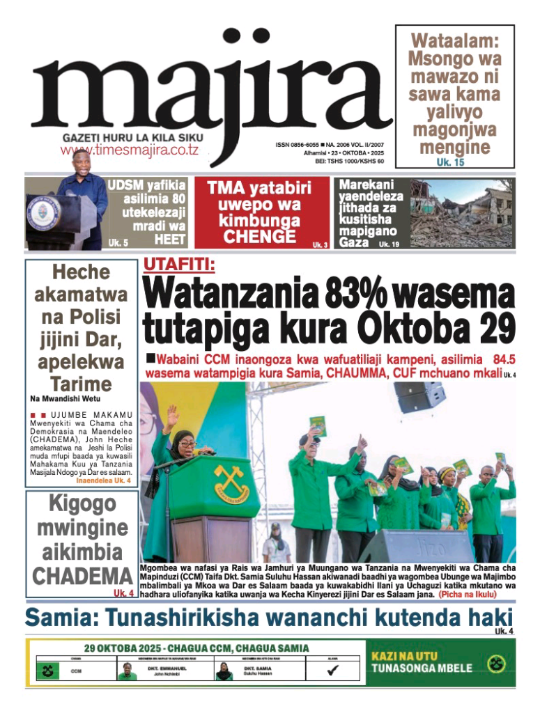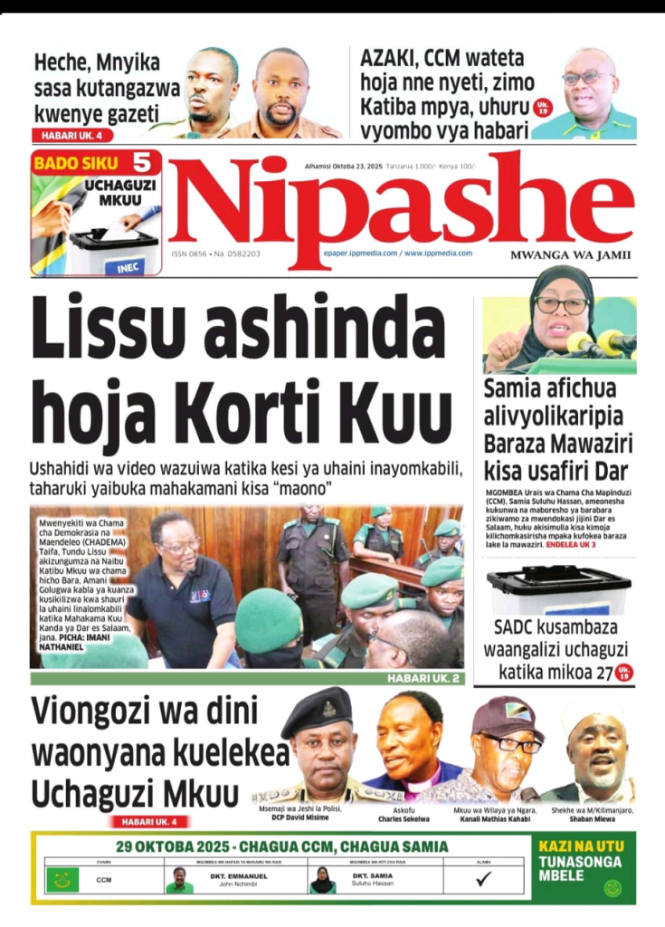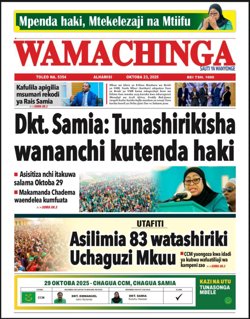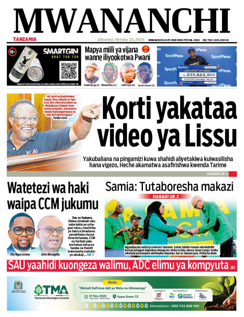 MagazetiLISSU AENDELEA KUSHINDA HOJA KORTI KUU ! MAGAZETI YA LEO OCT 23 MWAKA 2025 NA ARUSHA24TV Last updated: October 23, 2025 3:12 am Geofrey Stephen Share 0 Min Read Karibu Arusha24tv leo Alhamisi Oct 23 Mwaka 2024 Kutazama Kilicho Andikwa Katika Magazeti ya Tanzania mbele na nyuma Hii ni A24tv . Mwisho. MASHAHIDI 30 KESI YA LISU IKIENDELEA MAHAKA KUU LEO MAGAZETI YA LEO OCT 6 MWAKA 2025 NA A24TV . ASKOFU NI MARUFUKU WATAWA NA MAPADRI, KUJIUSISHA NA SIASA ! MAGAZETI YA LEO SEPT 26 MWAKA 2025 NA A24TV . MAMA MZAZI WA POLEPOLE ALIA KWA UCHUNGU KUHUSU MWANAE ! MAGAZETI YA LEO OCT 8 MWAKA 2025 NA A24TV . KESI YA LISSU BADO NGOMA NZITO ! MAGAZETI YA LEO SEPT 10 MWAKA 2025 NA ARUSHA 24TV . Pata habari za magezeti ya leo tarehe 13 Julai 2024, Raisi Samia aanza ziara KataviSign Up For Daily NewsletterBe keep up! Get the latest breaking news delivered straight to your inbox. Email address: Leave this field empty if you're human: By signing up, you agree to our Terms of Use and acknowledge the data practices in our Privacy Policy. You may unsubscribe at any time. Share This Article Facebook Whatsapp Whatsapp Telegram Copy Link Print Previous Article SERIKALI IMEONESHA DHAMIRA YA DHATI KULINDA MAISHA YETU DHIDI YA MAMBA – WANANCHI MARA Next Article VMware Workstation 15 Portable exe Patch (x32-x64) Final Instant Leave a Comment Leave a Comment Leave a Reply Cancel replyYour email address will not be published. Required fields are marked * Recipe Rating Recipe Rating Comment *Name * Email * Website Save my name, email, and website in this browser for the next time I comment. Stay Connected235.3kFollowersLike69.1kFollowersFollow11.6kFollowersPin56.4kFollowersFollow136kSubscribersSubscribe4.4kFollowersFollow - Advertisement -Latest News LISSU ASHINDA TENA PINGAMIZI ! FAMILIA YA HECHE WATAKA KUJUA MTOTO WAO ALIPO ? MAGAZETI YA LEO OCT 24 MWAKA 2025 NA A24TV. Magazeti October 24, 2025 SERIKALI IMEONESHA DHAMIRA YA DHATI KULINDA MAISHA YETU DHIDI YA MAMBA – WANANCHI MARA Makala October 22, 2025 Viongozi wa Dini Kanda ya Kaskazini Waibua Hoja Saba kuelekea Uchaguzi Mkuu: Wataka Amani, Haki na Busara kwa Vyombo vya Dola Habari October 22, 2025 ONYO KALI MAANDAMANO NI KWENDA KUPIGA KURA TU ! MAGAZETI YA LEO OCT 22 MWAKA 2025 NA ARUSHA 2025 Magazeti October 22, 2025AdvertiseAdvertise with usNewslettersDeal
