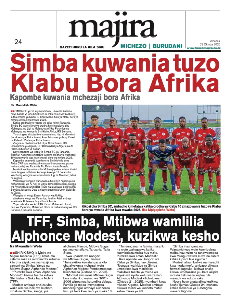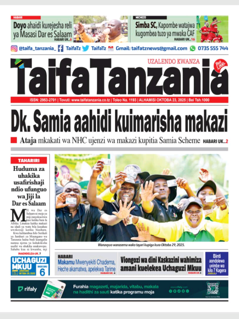 Karibu Arusha24tv leo Alhamisi Oct 23 Mwaka 2024 Kutazama Kilicho Andikwa Katika Magazeti ya Tanzania mbele na nyuma Hii ni A24tv . Mwisho.