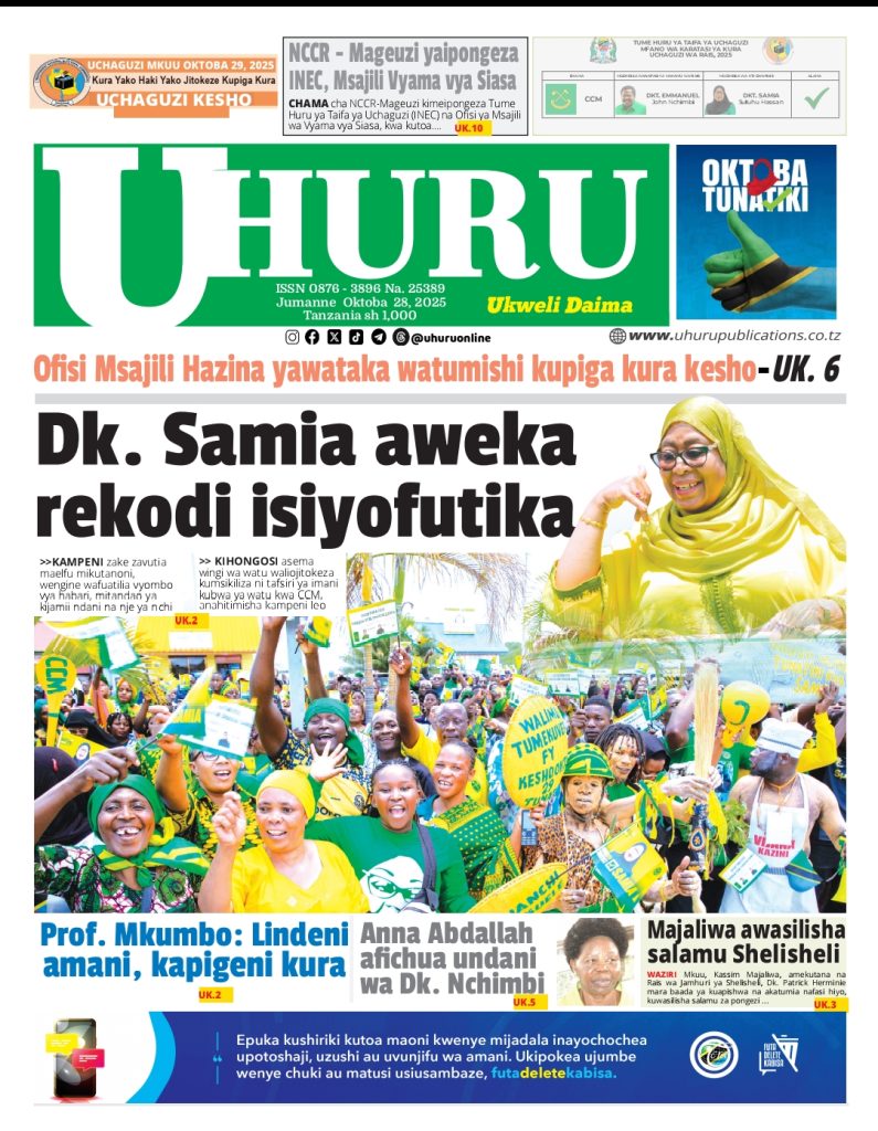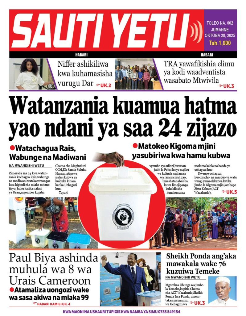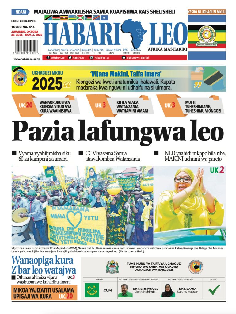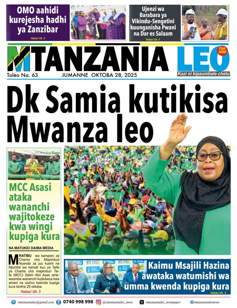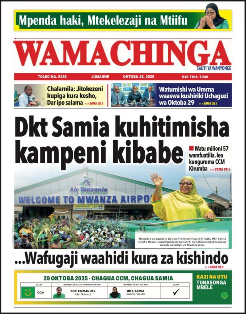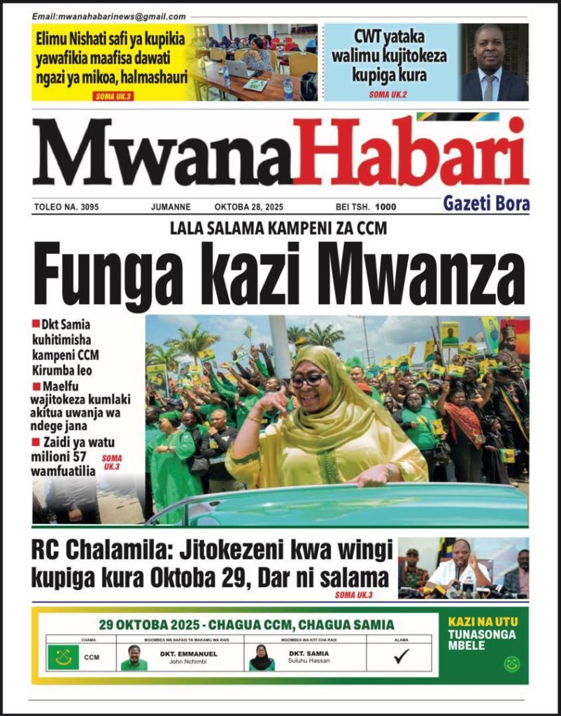 MWENEZI WA CCM TAIFA ,KUNAMAKADA WA CCM .WALITUMWA KUVURUGA SERIKALI ! MAGAZETI YA LEO OCT 28 MWAKA 2025 NA ARUSHA24TV .