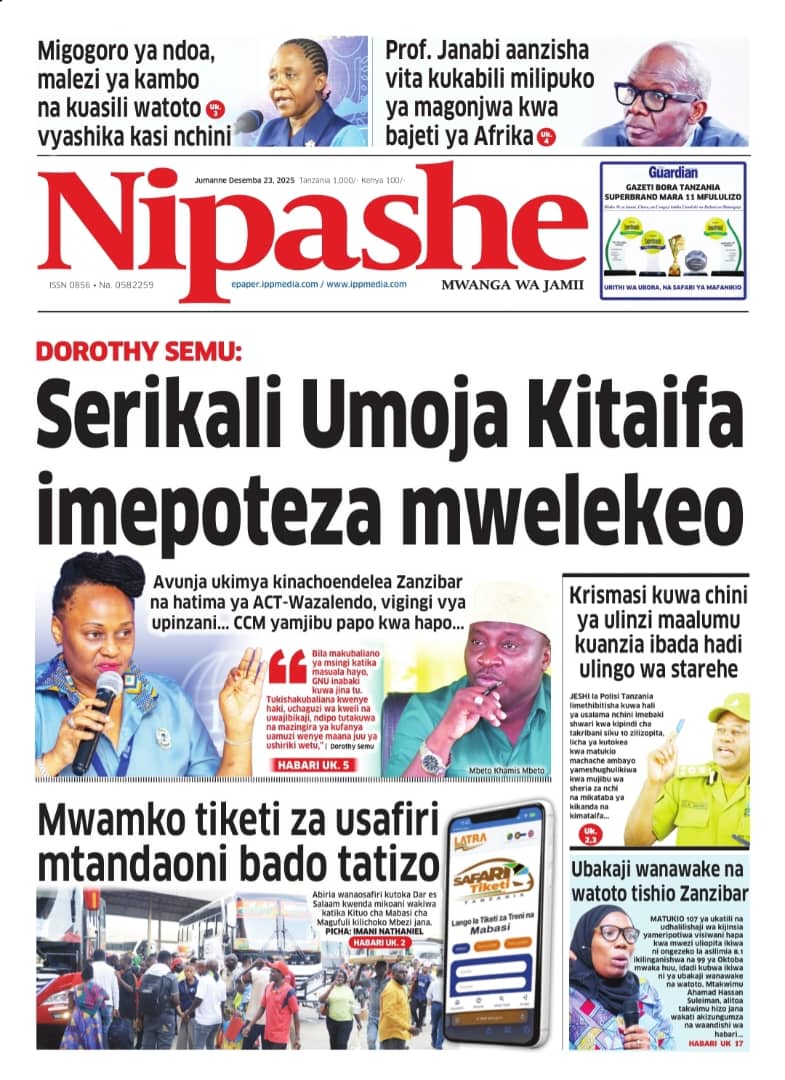 Karibu Arusha24tv leo Dec 23 Mwaka 2025 kutazama kiicho andikwa katika magazazeti ya Tanzana mbele na nyuma Hii ni A24tv .