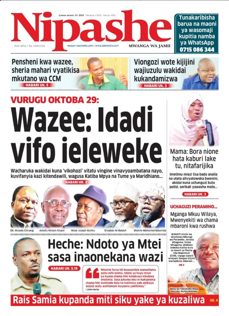 MagazetiMTEI KUZIKWA KESHO MAMIA KUMSINDIKIZA LEO NYUMBANI KWAKE VIGOGO WA CHADEMA WAFURIKA ARUSHA ! MAGAZETI YA LEO JAN 23 MWAKA 2026 NA ARUSHA24TV . Last updated: January 23, 2026 3:29 am Geofrey Stephen Share 0 Min Read Ijumaa ya leo Jan 23 Mwaka 2026 karibu Arusha24tv kutazama kilicho Andikwa katika Magazeti ya Tanzania mbele na nyuma Hii ni A24tv. Mwisho .Sign Up For Daily NewsletterBe keep up! Get the latest breaking news delivered straight to your inbox.[mc4wp_form]By signing up, you agree to our Terms of Use and acknowledge the data practices in our Privacy Policy. You may unsubscribe at any time. Share This Article Facebook Whatsapp Whatsapp Telegram Copy Link Print Previous Article Exploring the Benefits of Neospin Login: A Comprehensive Guide for Users Next Article Examining the Legitimacy of Richard Casino: An In-Depth Analysis Leave a Comment Leave a Comment Leave a Reply Cancel replyYour email address will not be published. Required fields are marked *Comment *Name * Email * Website Save my name, email, and website in this browser for the next time I comment. Stay Connected235.3kFollowersLike69.1kFollowersFollow11.6kFollowersPin56.4kFollowersFollow136kSubscribersSubscribe4.4kFollowersFollow - Advertisement -Latest News MAKAMU MWENYEKITI WA CHADEMA TAIFA JOHN HECHE AFIKA MSIBANI KWA MZEE MTEI NATOA POLE KWA FAMILIA MSIBA NI WETU WOTE BREAK NEWS January 23, 2026 Alles, was Sie über den gewünschten Gewinn Casino Promo-Code wissen müssen. Uncategorized January 23, 2026 Die Bedeutung von Wanted Win Casino Promo Code für Online-Spieler Uncategorized January 23, 2026 Die Vorteile von WantedWin Online: Ein Überblick über die beliebte Plattform Uncategorized January 23, 2026AdvertiseAdvertise with usNewslettersDealSign Up for Our NewsletterSubscribe to our newsletter to get our newest articles instantly![mc4wp_form id=”2663“]