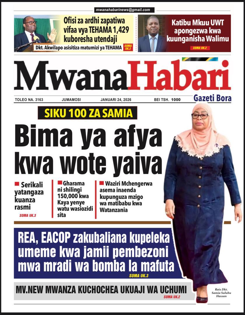 Juma Mosi ya leo Jan 24 Mwaka 2026 karibu kutazama kilicho andikwa katika Magazeti ya Tanzania mbele na nhuma Hii ni A24tv.