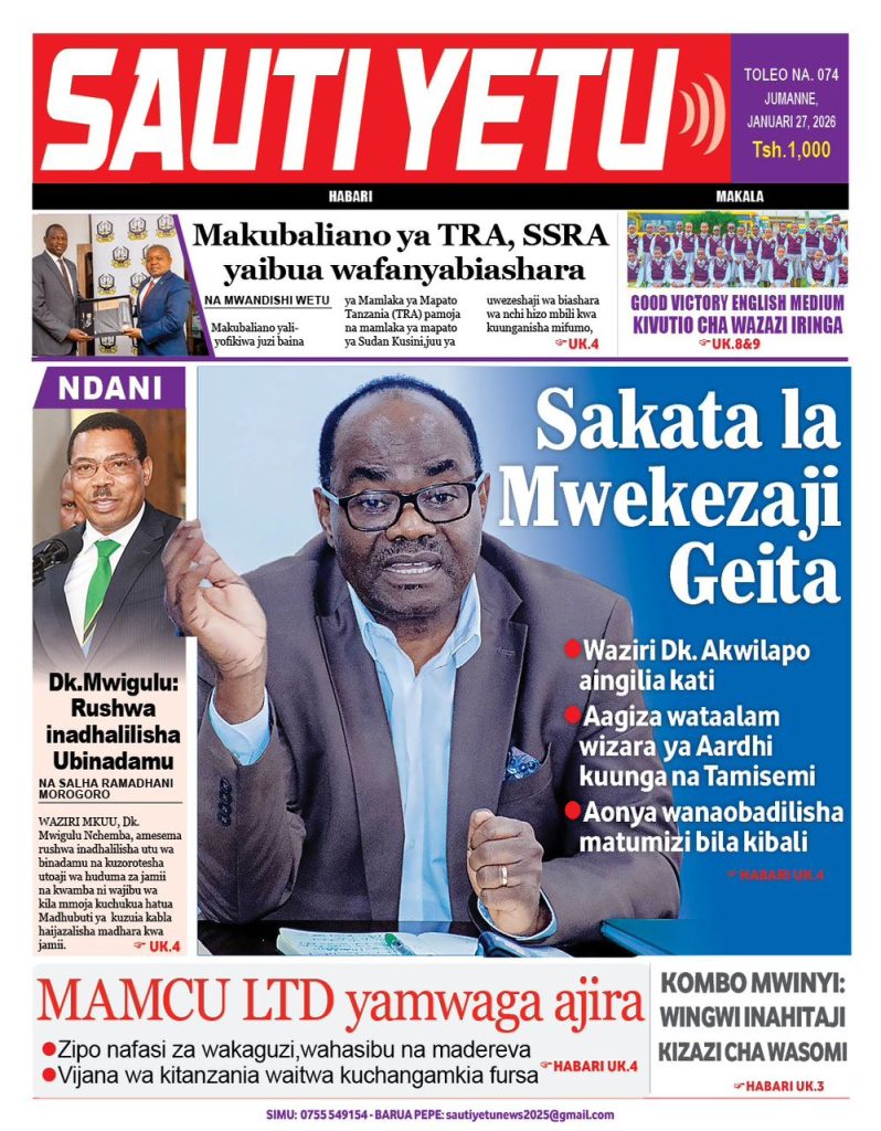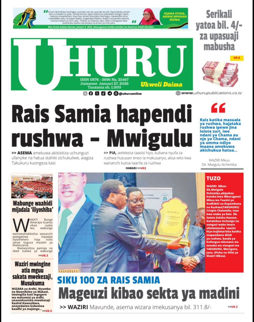 MAGEREZA WAKANA UJUMBE WA LISSU ! VYOO VYA SHULE HAVINA MAJI KWA MIAKA MINNE MAGAZETI YA LEO JAN 27 MWAKA 2026 NA ARUSHA24TV .