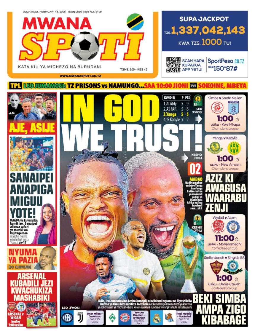 SIMBA KIBARUANI LEO KIMATAIFA ! YANGA KESHO UWANJA WA AMANI ZANZIBAR , MAGAZETI YA LEO FEB 14 MWAKA 2026 NA ARUSHA24TV .