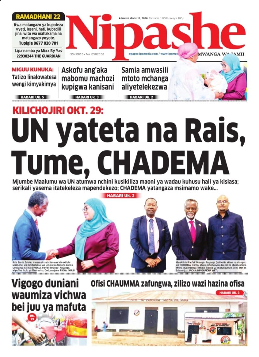 MagazetiVIGOGO DUNIANI WAUMIZA VICHWA KUPAA JUU KWA BEI YA MAFUTA ! MAGAZETI YA LEO MARCH12 MWAKA 2026 NA ARUSHA24TV. Last updated: March 12, 2026 3:15 am a24tv Share 0 Min Read Alhamisi ya leo Marchi 12 Mwaka 2026 karibu Arusha24tv kutazama kilicho andikwa katika Magazeti ya Tanzania mbele na nyuma Hii ni A24tv. Mwishoo…w Sign Up For Daily NewsletterBe keep up! Get the latest breaking news delivered straight to your inbox.[mc4wp_form]By signing up, you agree to our Terms of Use and acknowledge the data practices in our Privacy Policy. You may unsubscribe at any time. Share This Article Facebook Whatsapp Whatsapp Telegram Copy Link Print Previous Article USHIRIKIANO MPYA WA NM-AIST NA GLOBAL EDUCATION LINK KUFUNGUA FURSA ZA ELIMU NA UWEKEZAJI KWA VIJANA WENYE VIPAJI KUNUFAIKA Next Article RIPOTI YA NGORONGORO YAMFIKIA RAIS SAMIA ! MAGAZETI YA LEO MARCHI 13 MWAKA2026 NA ARUSHA24TV Leave a Comment Leave a Comment Leave a Reply Cancel replyYour email address will not be published. Required fields are marked *Comment *Name * Email * Website Save my name, email, and website in this browser for the next time I comment. AdvertiseAdvertise with usNewslettersDealSign Up for Our NewsletterSubscribe to our newsletter to get our newest articles instantly![mc4wp_form id=”2663“]