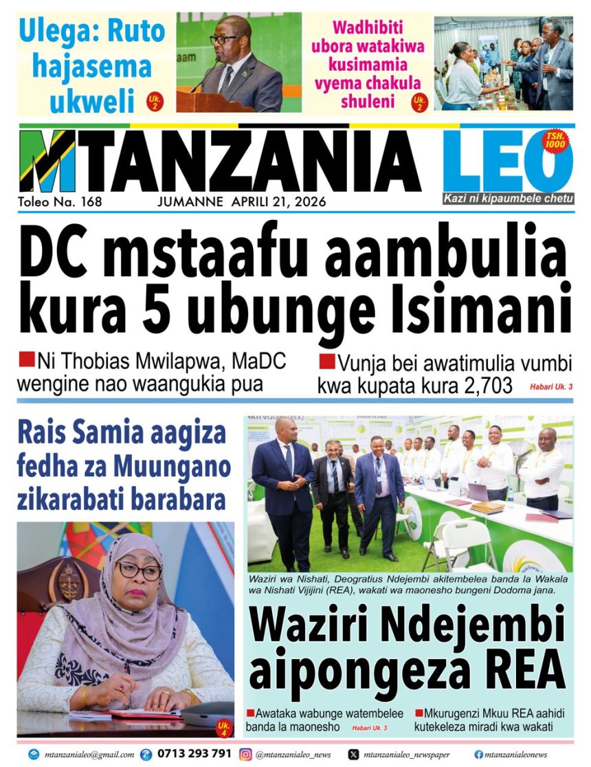 Jumanne ya leo April 21 Mwaka 2026 karibu Arusha24tv kutazama habari kubwa katika Magazeti ya Tanzania mbele na nyuma Hii ni A24tv.